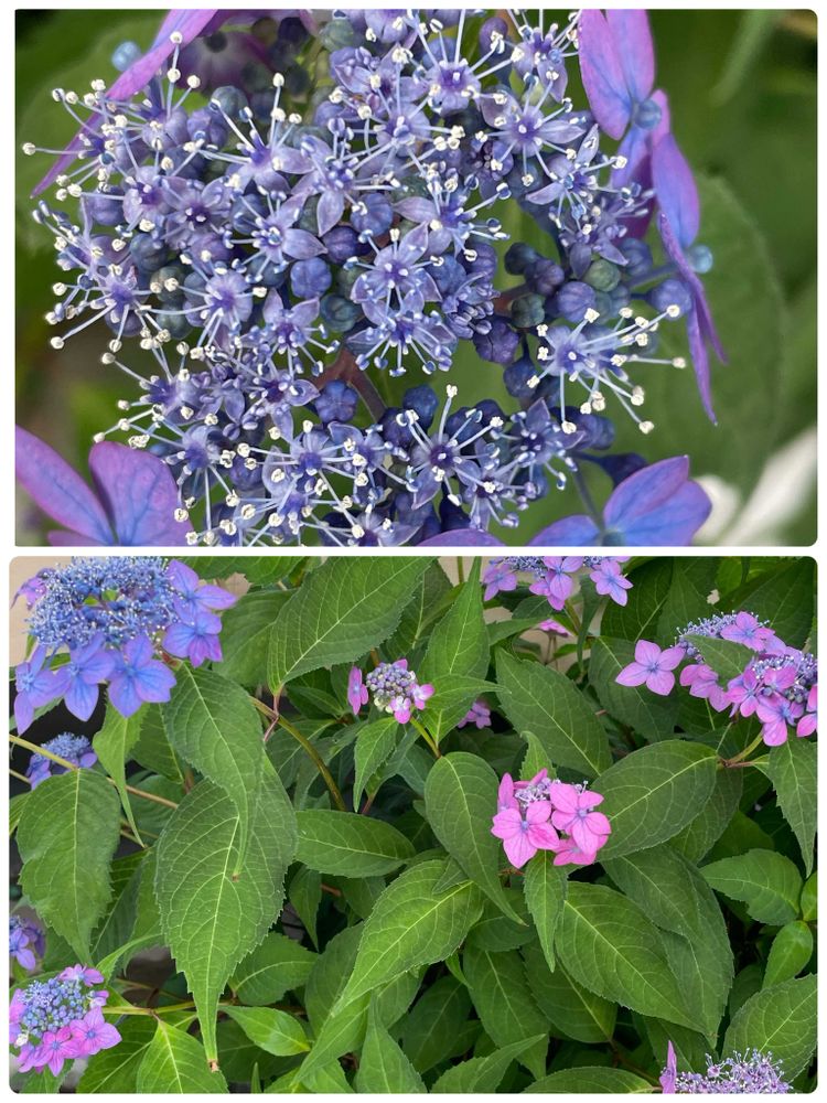 山アジサイ愛姫さんが咲きだしました😊今年も土壌がアルカリ性よりのためピンク多めです😅