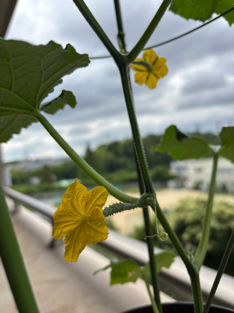 ①今朝、嬉しい事に胡瓜のお花が2輪開花していました🌼