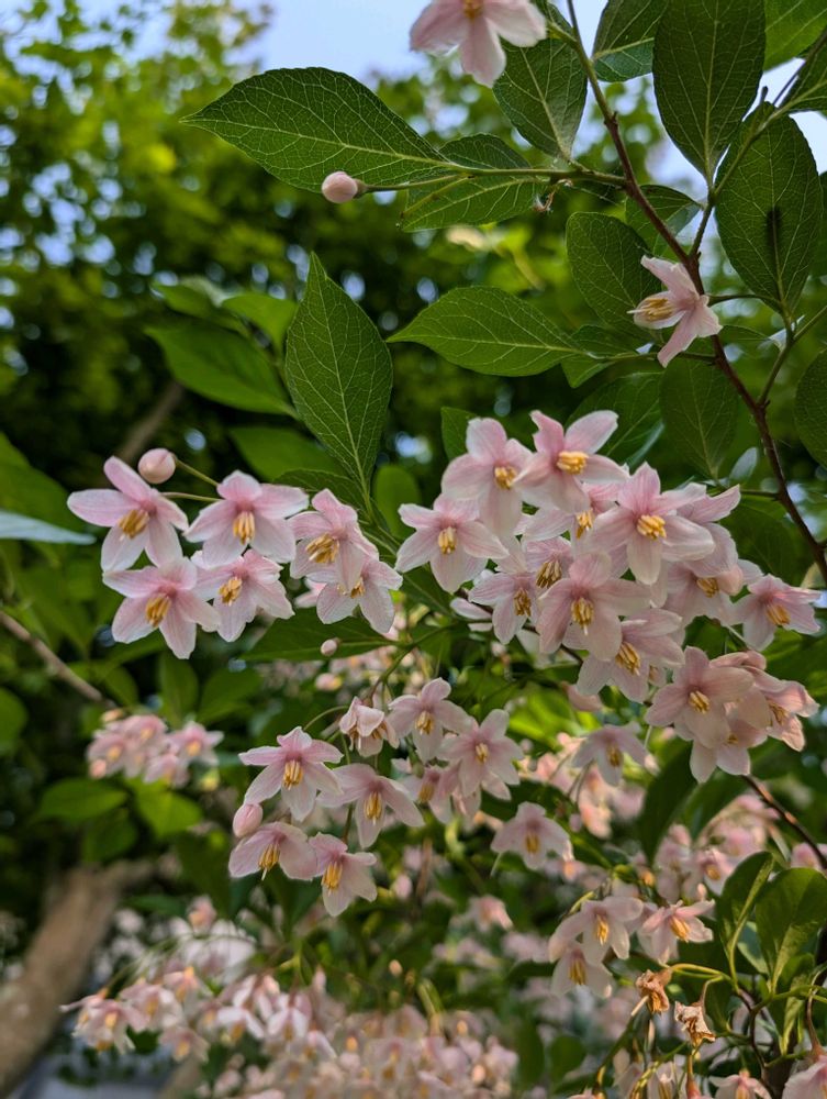 ①②スイカズラ(里山)③エゴの木(庭)④ヤマボウシ(庭)⑤コバノズイナ(庭)