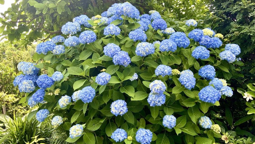 こんもりとした形のよい紫陽花の木ですねぇ💕 💙🩵の紫陽花がいっぱい👏✨