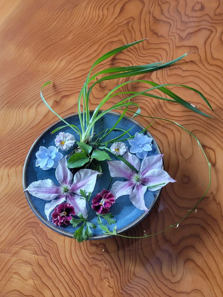 クレマチスカット✂したので飾って見ました😅水栽培のオリズルラン 添えて見ました😊