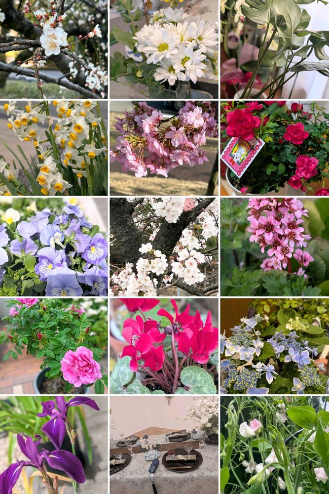 Googleフォトが「自然のブーケ💐春」と題してコラージュしてくれました🍀😊✨2025年3月㊤㊧熱田神宮🩷〜5月㊦㊨お友達の🏠三重県バス旅行🚌豊明花き市場💜カキツバタ㊦㊧近所の桜並木🌸長崎の実家🛩シクラメン💓豊田市美術館㊦㊥テーブルコーディネート~♬♬他🎼🎹*..。o☕🌸🌿🍃°・:✿.*..。o☕🌸🌿🍃°・:❀.*..。o☕🌸🌿🍃°・:✿.*🎼🎹