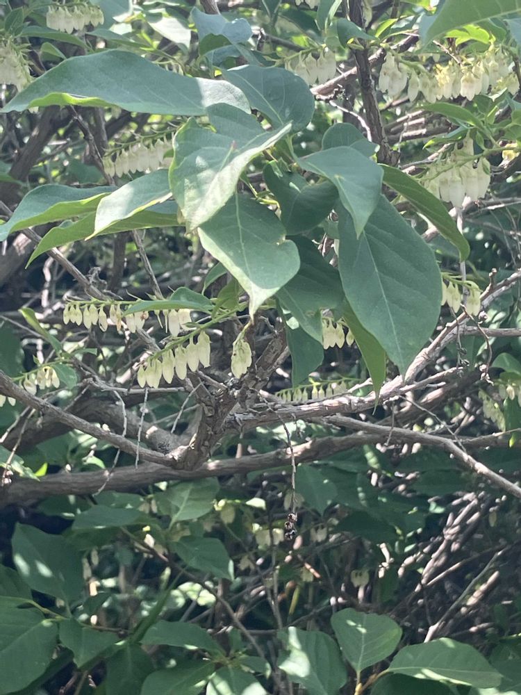 山の上にちょっと花が咲いています。何の木かなぁ…