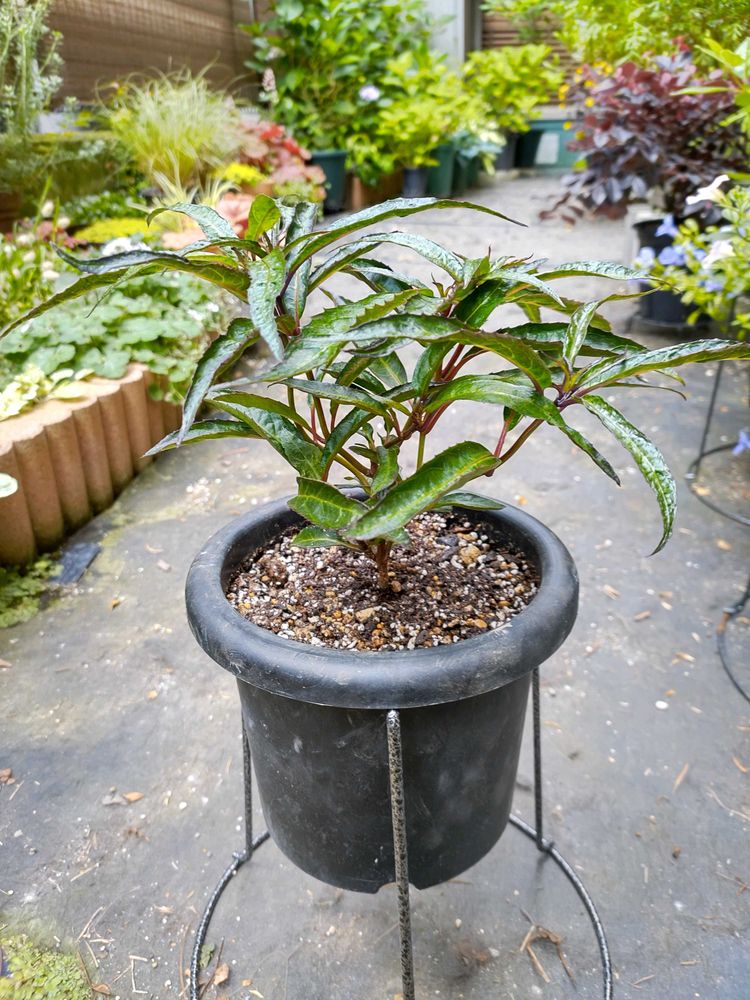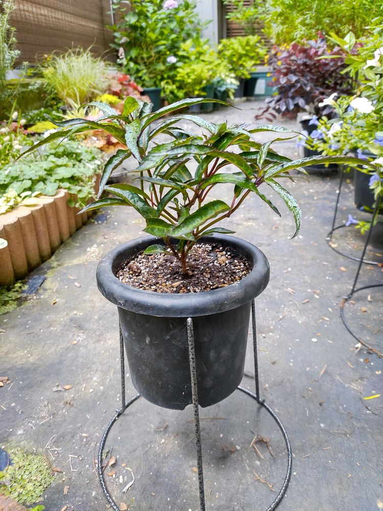 アジサイなのに葉が細く黒葉なので目が止まり、即購入😁