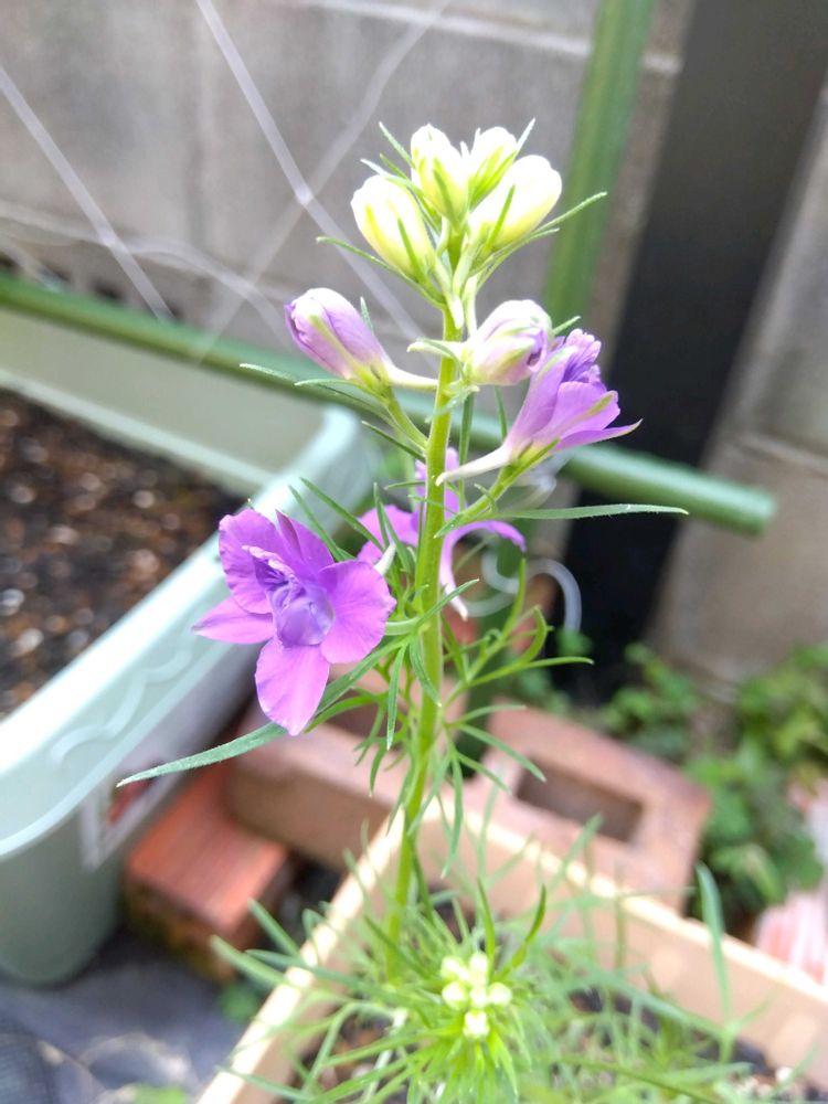 サカタのタネさんのミックスフラワーガーデンの種からチドリソウが咲きました🌸