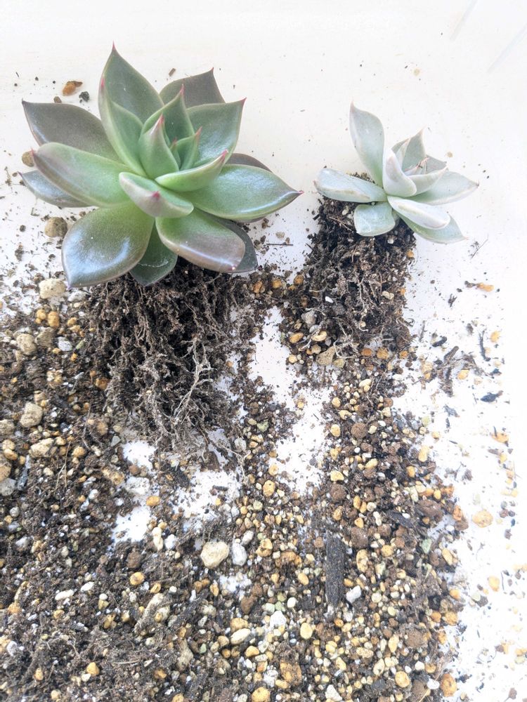 ②下半分は赤城農園のゴロゴロ多肉土かな。で、上半分に刀川土:ホムセン土=1:1を入れて、土が足りなくなって種蒔き用土を被せた感じ。雑だぁ🤣