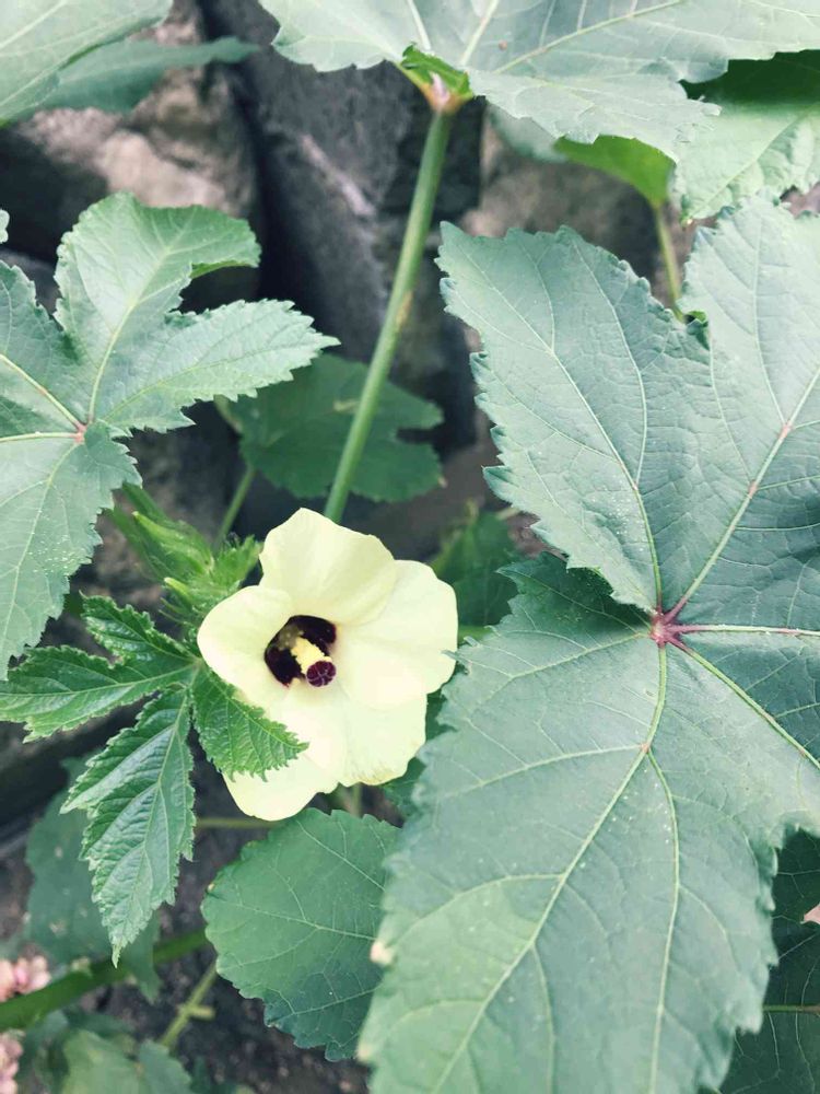 木ぼけ?してたっぽいオクラがやっとやっと花を咲かせた!!