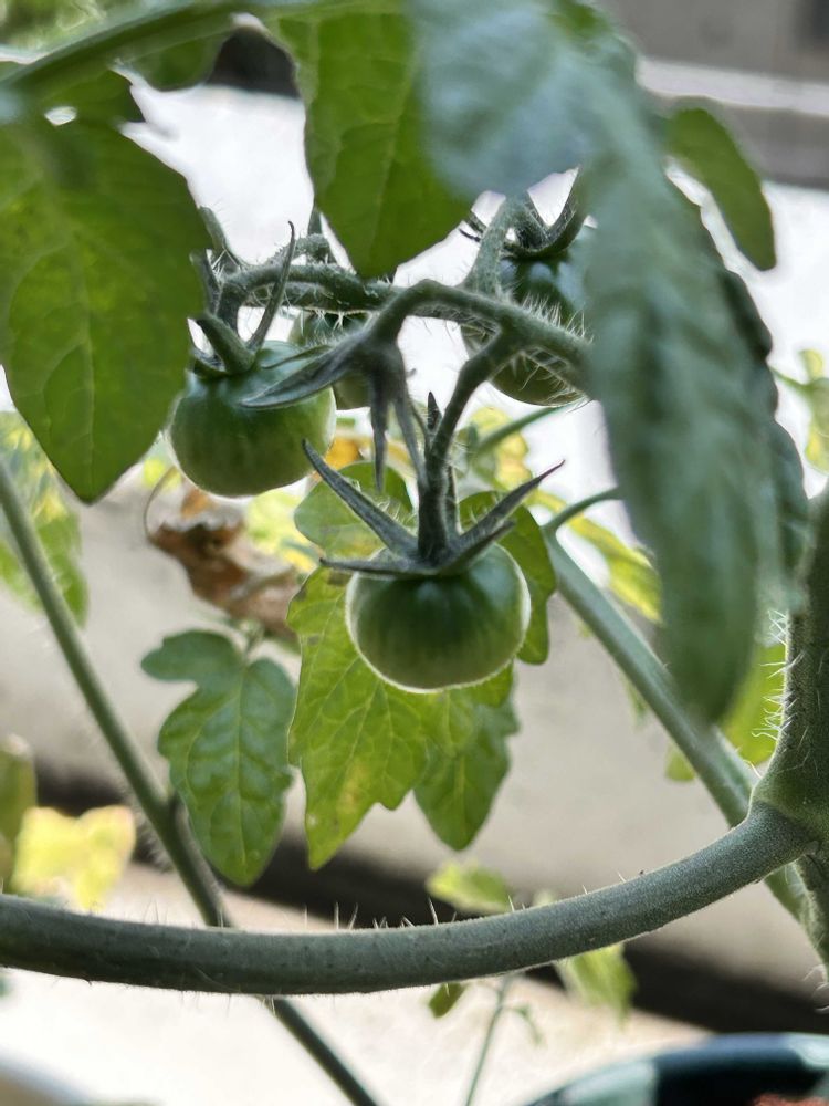ミニ家庭菜園始めて、初めて🍅の実が成りました☺️