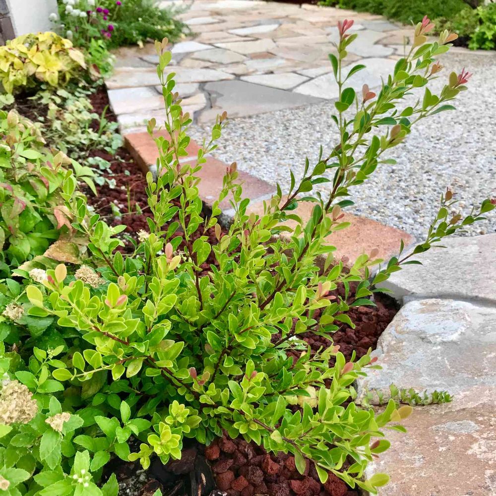 赤い枝に緑の濃淡の葉っぱと ほんのりピンクの新芽が可愛いアデク🌿 名前を忘れない内に記録しておこう😅