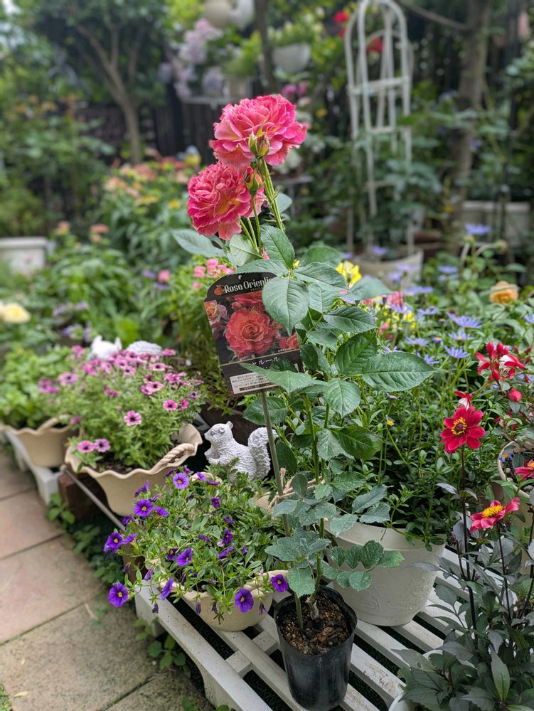 時期的に一番花が終った苗が多い中、ロサオリ新品種の見本鉢やオベリスク仕立てのリヒトは、今もステキに咲いていました✨🌹✨