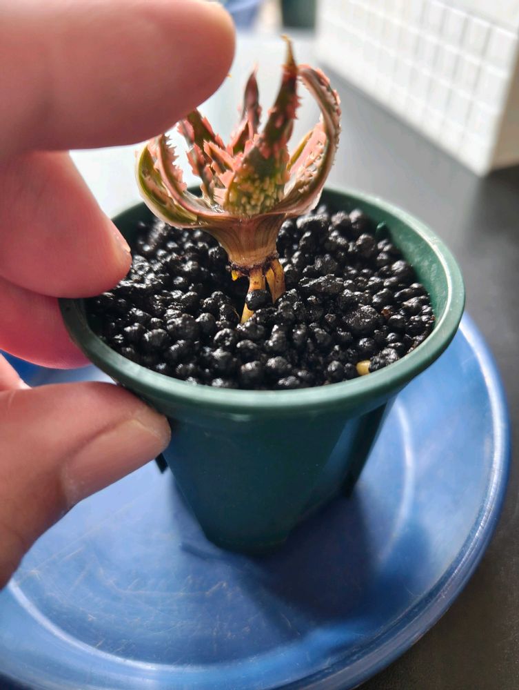 2週間前に親株から外してソイルに置いといたアロエ・フラミンゴの子株。