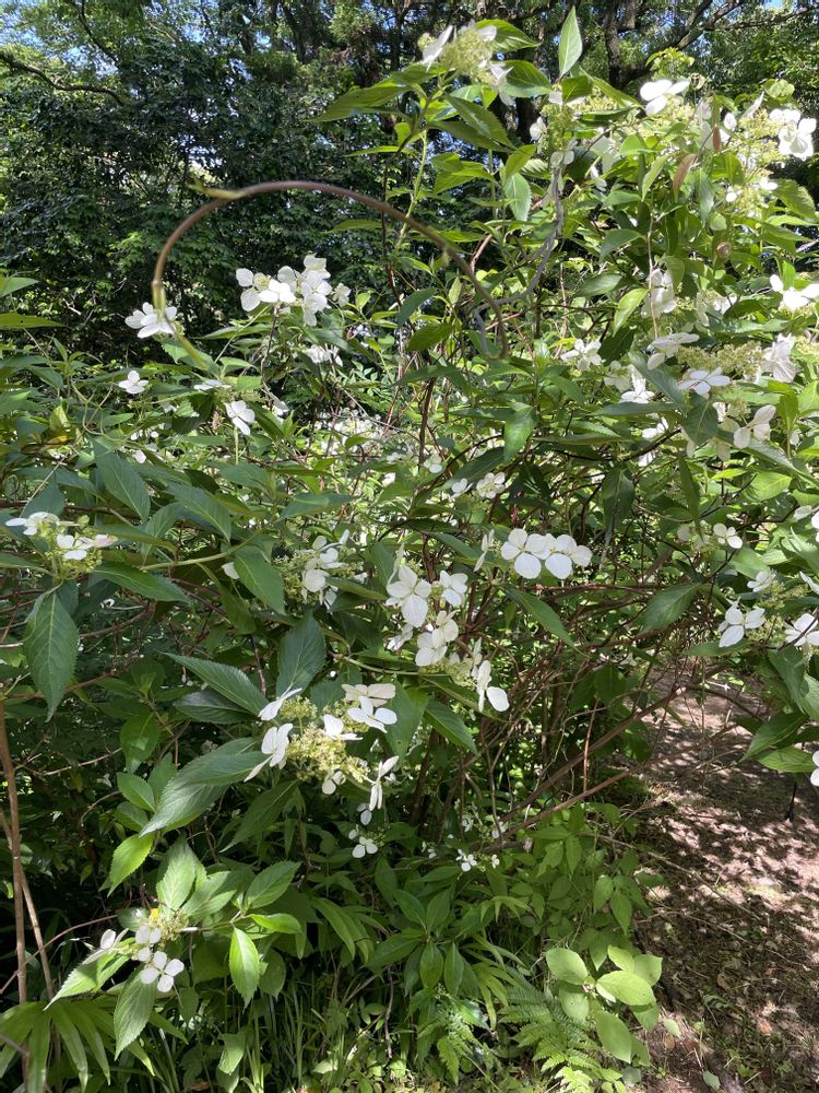 不揃いの白い装飾花のヤクシマアジサイは大きな株になっていて目立ってます🥰