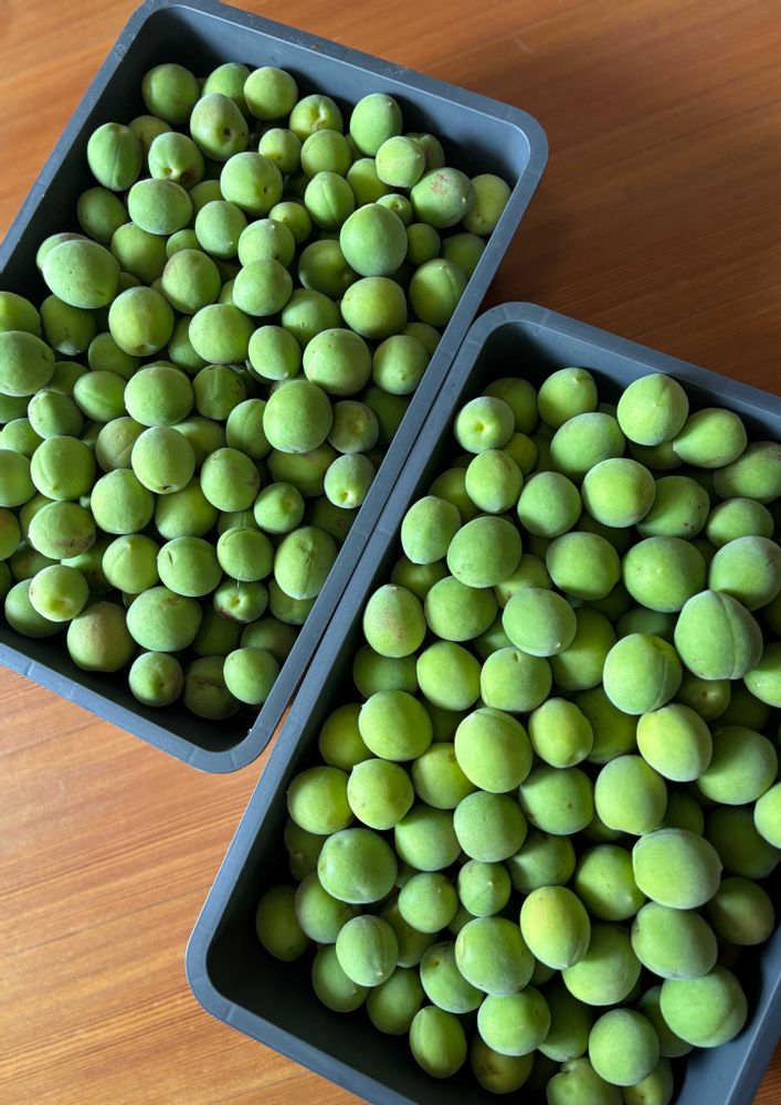 早速 なり口のヘタを取り、洗ってから氷砂糖等を買いに行き、8ℓ瓶🫙3つ 梅シロップを作りました(*^^*)