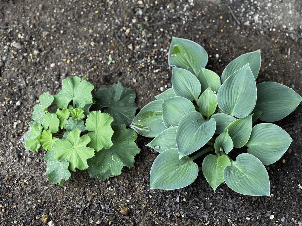 ③ホスタハルシオン(推定)とこぼれ種のアルケミラモリス