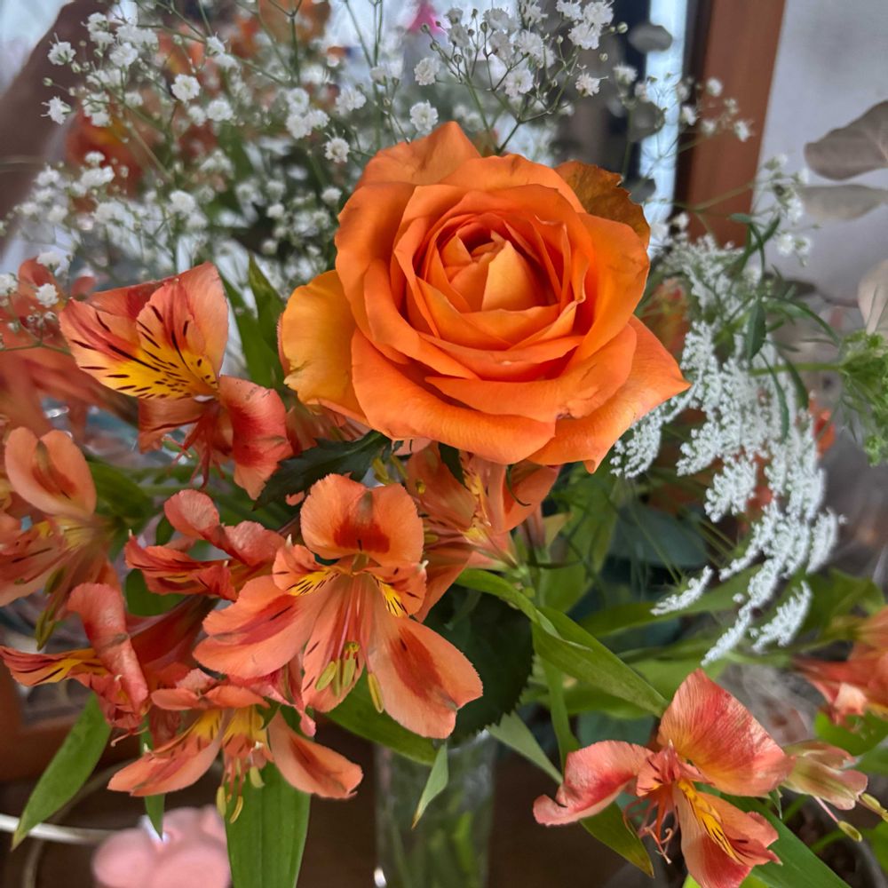 花のある暮らし,小さな花束,オレンジのバラの投稿画像