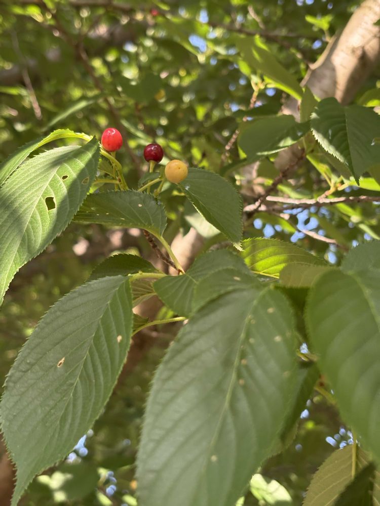 桜の木に小さな赤い実がぴかぴか光っていました。