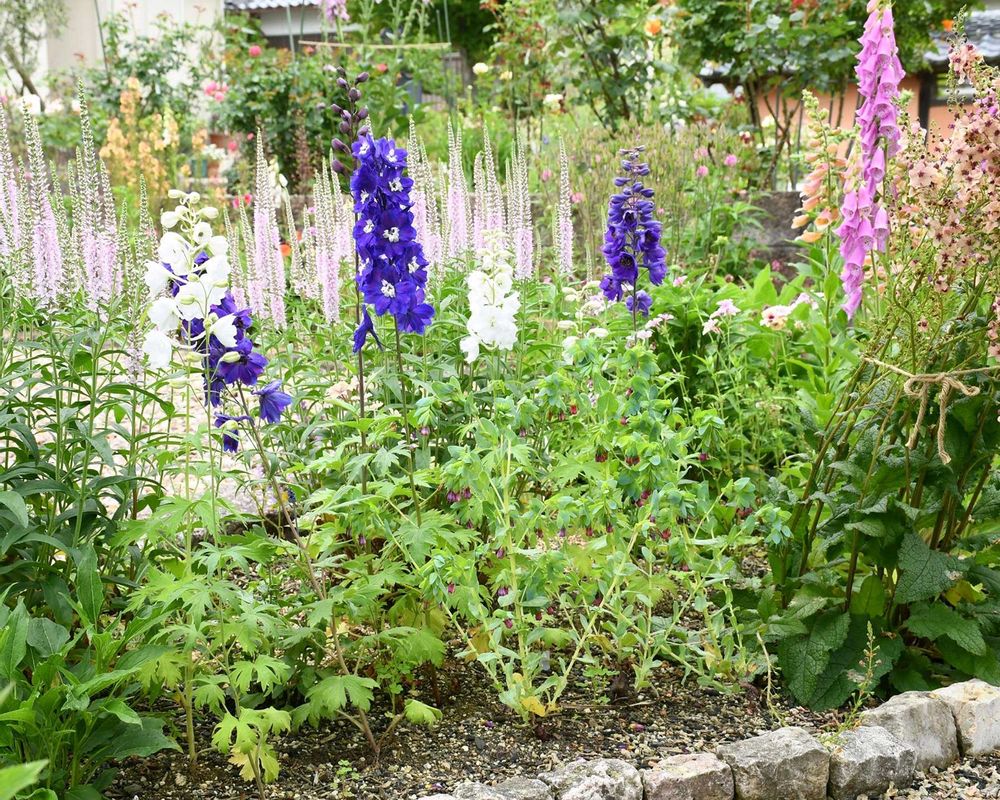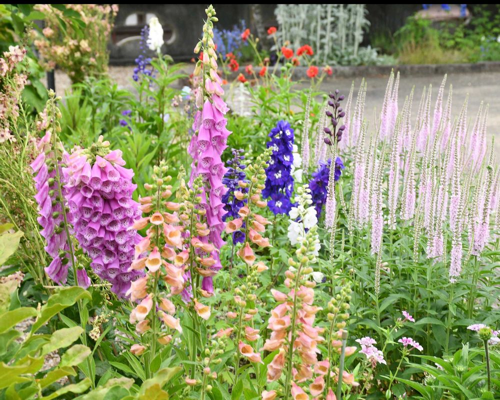 ①③⑤この花壇には現在、ジギタリス、ベロニカ・フェアリーテール、デルフィニウム、ゲウム・レッドドラゴン等が咲いています🧡