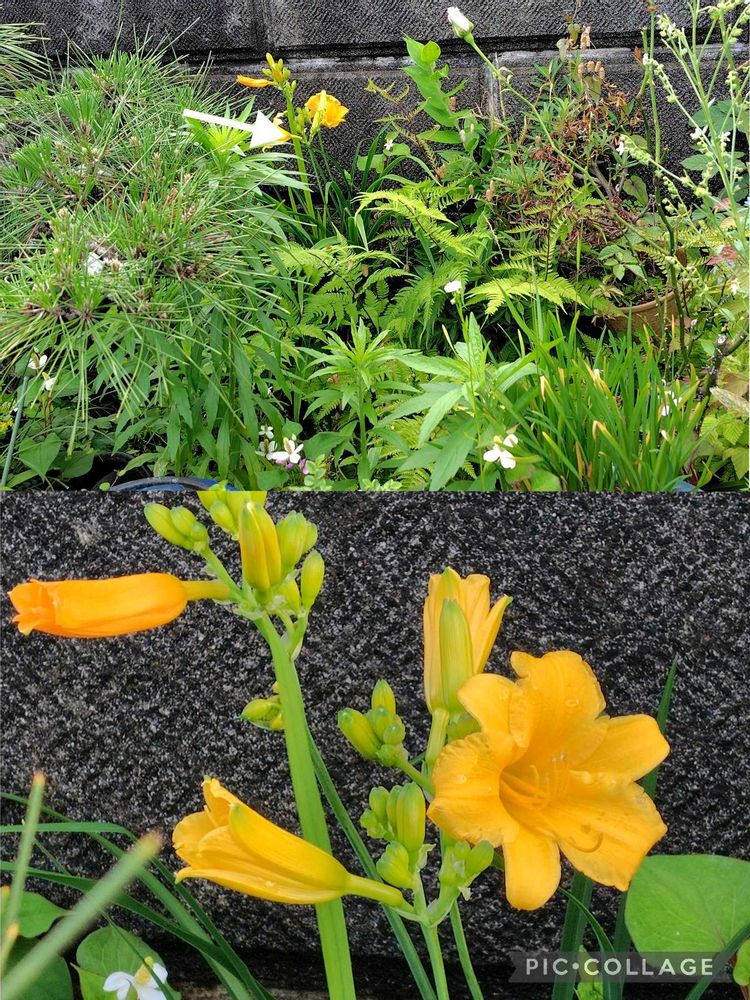 ②いつもの場所にキスゲ が咲きました いろんなものがごちゃごちゃ 植わっているので近づけないのでピンチアウトして撮りました