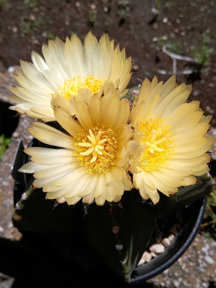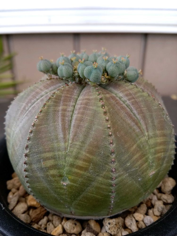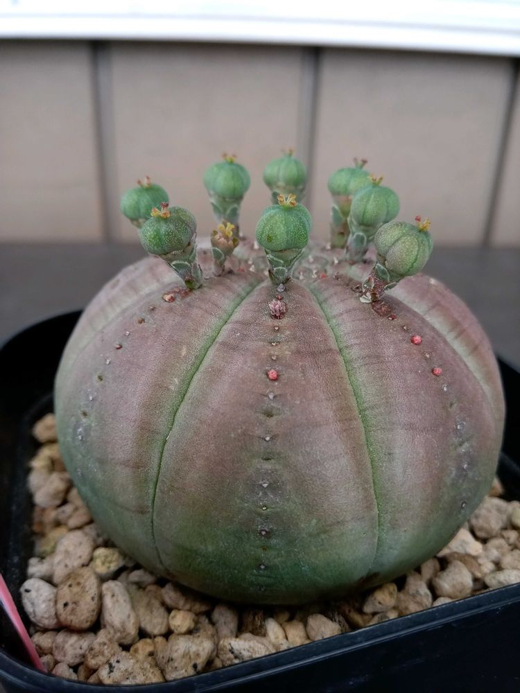 オベサと違って丸いまま育つシンメトリカは、いつも丸くて面白いです😄。花も穴から3つ出て、オベサよりも大きく成らないです。