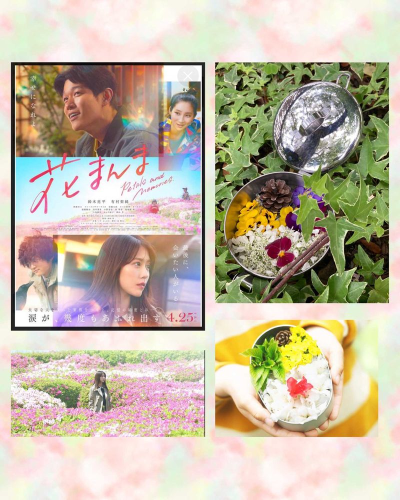 右上のアイビーに囲まれた銀のお弁当は、我が家で咲いてるお花の手作りで〜す🍱