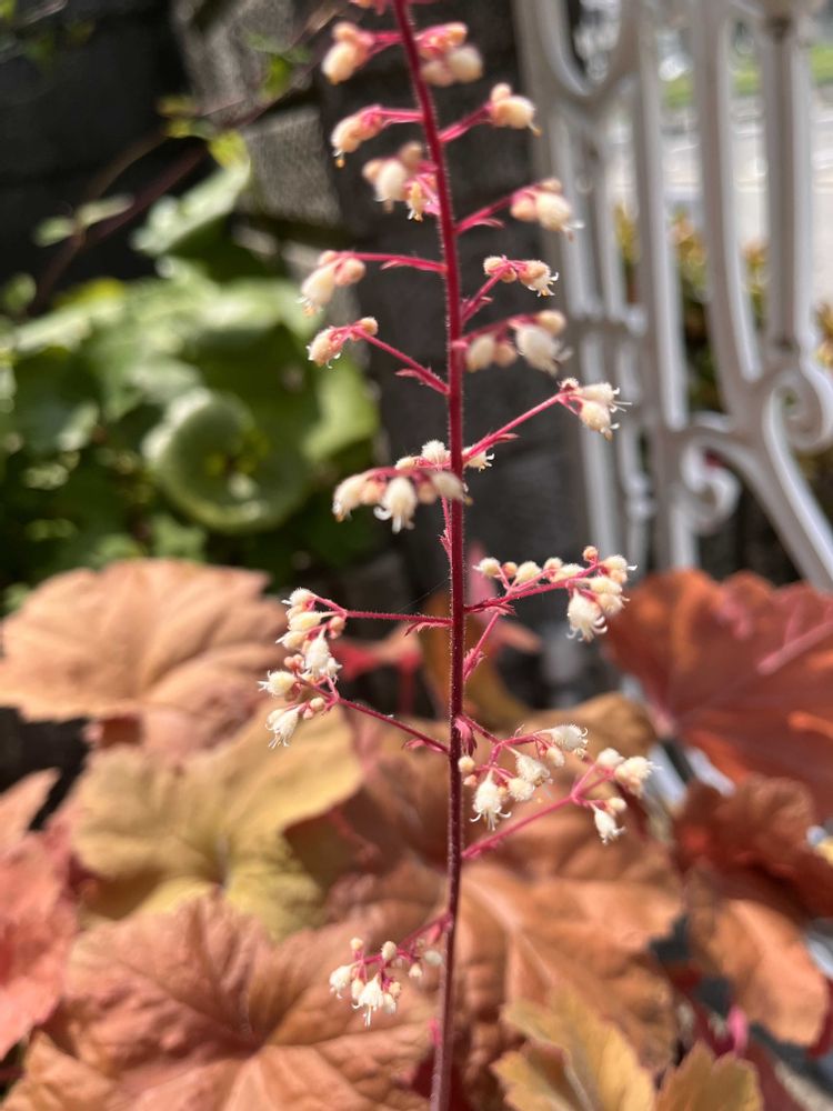 古い葉を取り除いたら、や〜っと我が家のヒューケラにもお花が😍