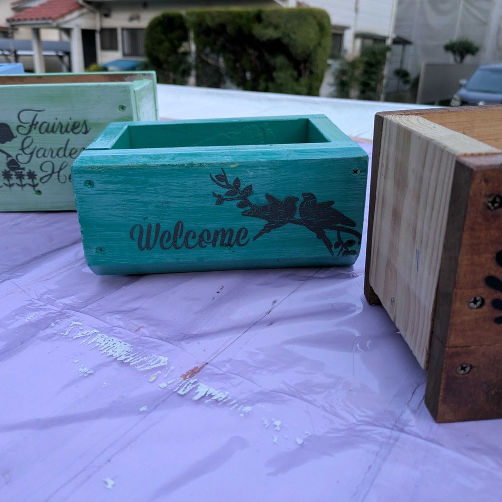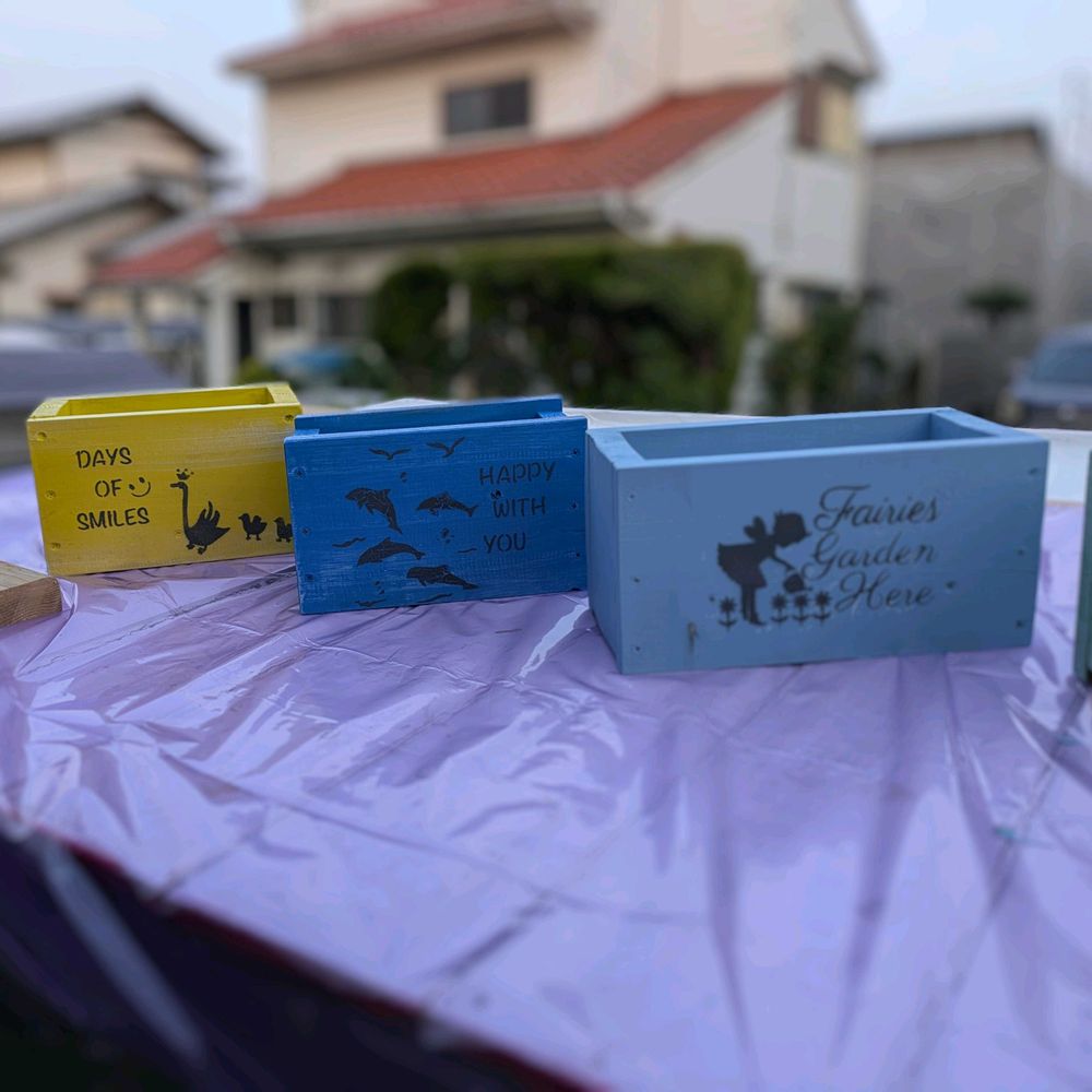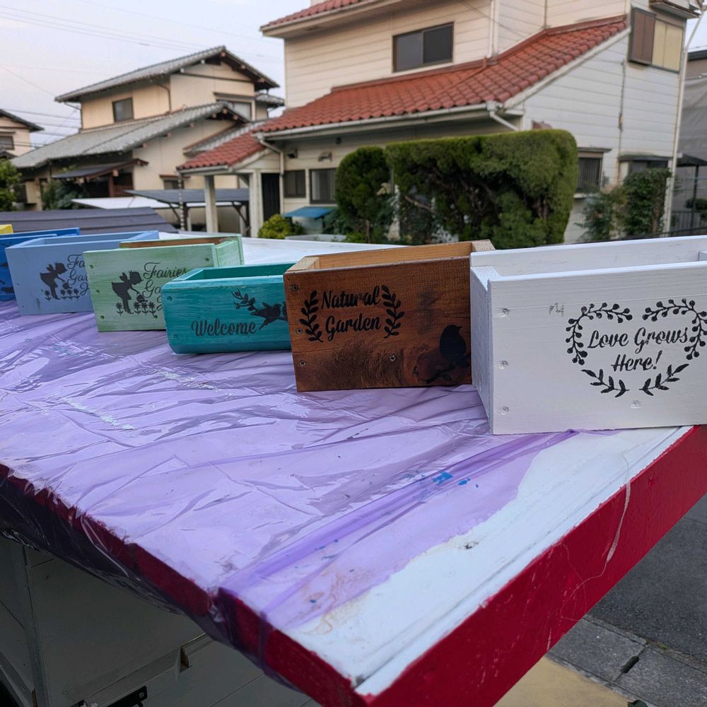 今日は、多肉や草花を一ポット植えるのにちょうど良いサイズの木製鉢を作りました(夫がw)