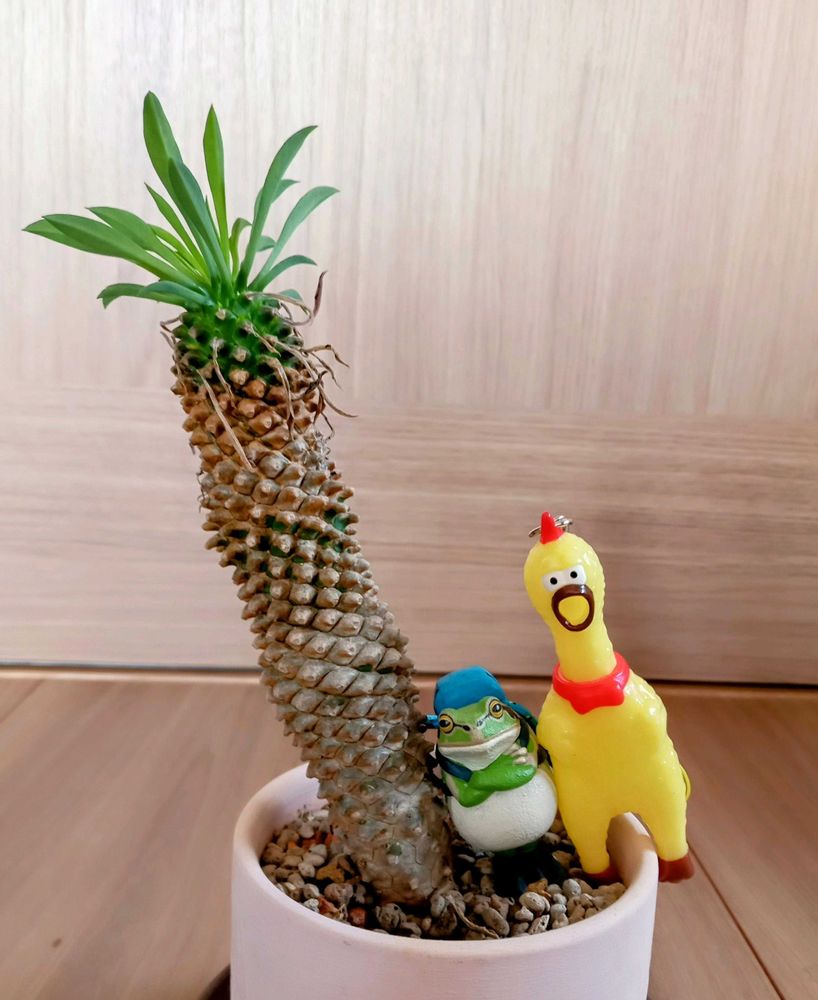 ちゃん🍍✨名付け親よ👍見てくれてありがとう🥰💓冬は南向きの窓際のセンターの棚にヌクヌクされてました😍水もやらないのに大きくなる不思議な成長を見ましたよ😂😂😂最近、頭がフサフサになって🤗うちの旦那に、その髪の毛分けて欲しい💦と話しかける🌀ぐるぐるでした😆✌️