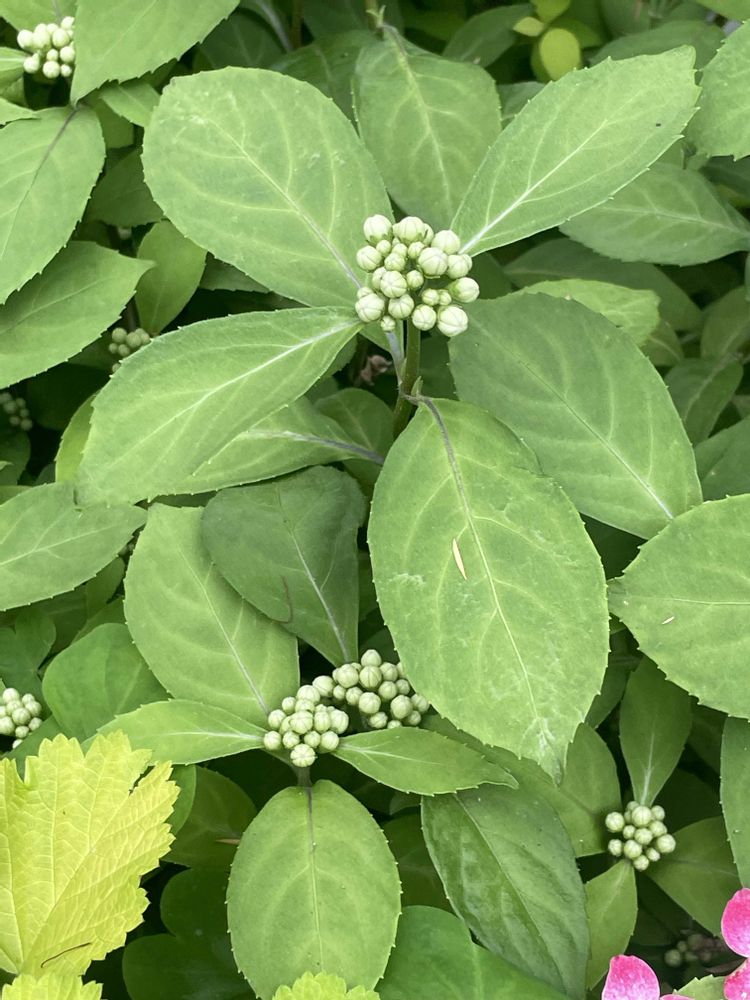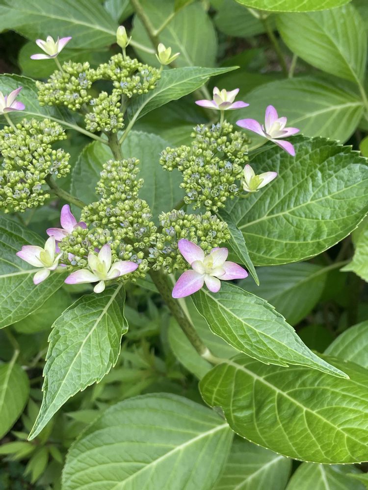山アジサイ紅、常緑アジサイ碧の瞳、金平糖が咲きかけて来ました🤗