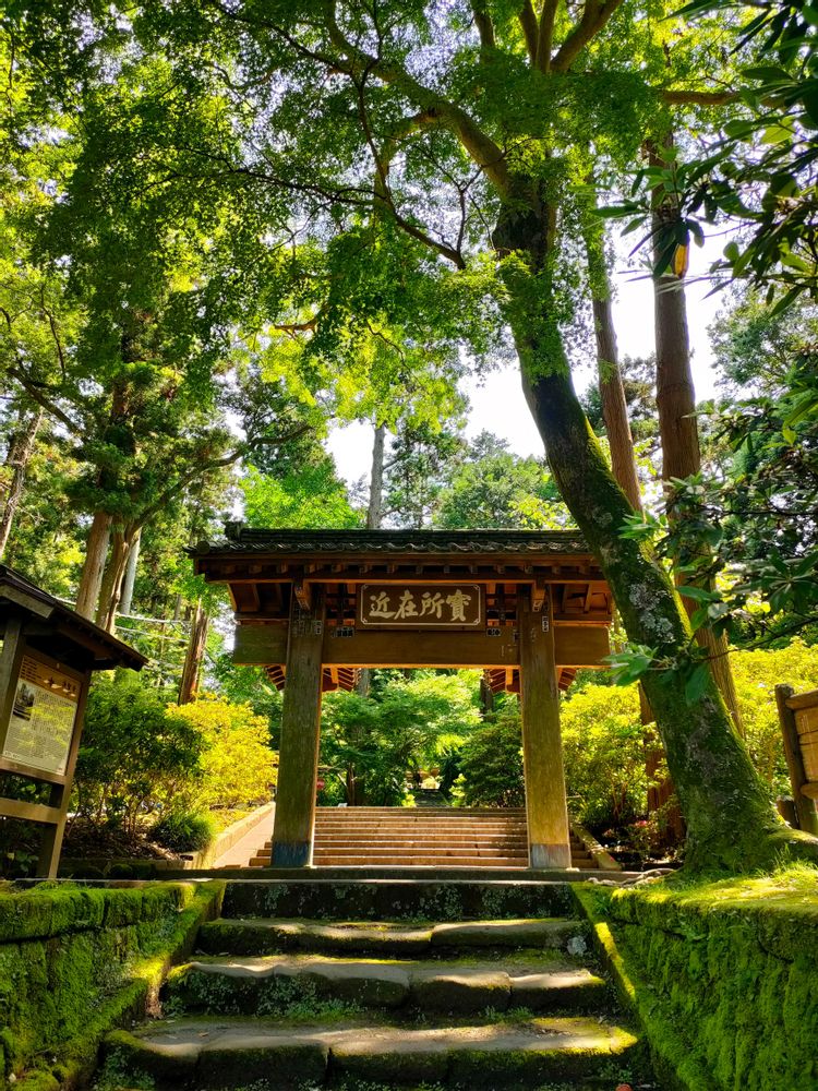 5️⃣大通りから小道に入って直ぐに見える境内へつうじる山門。☀陽射しが差し込み前日までの雨をたっぷり含んだ苔が輝いていました🌟