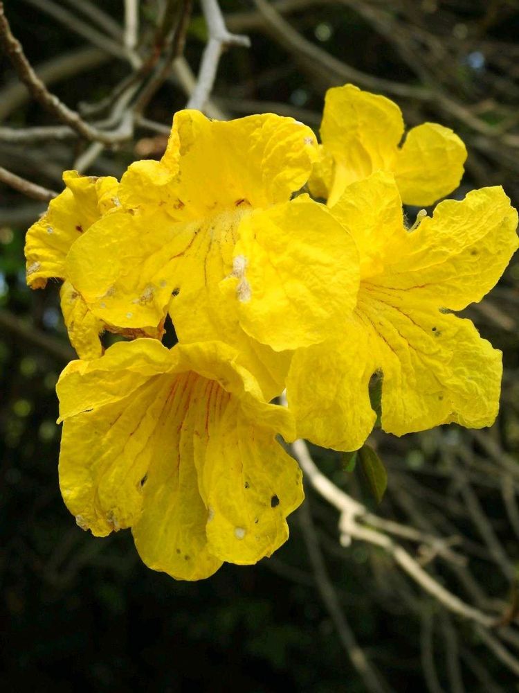 全く葉の出てない枝先に鮮やかな黄色い花が満開でした✨25日後の5月28日には葉が生い茂り枝先に実がいっぱいぶら下がってました✨面白い木ですね〜🤓👌