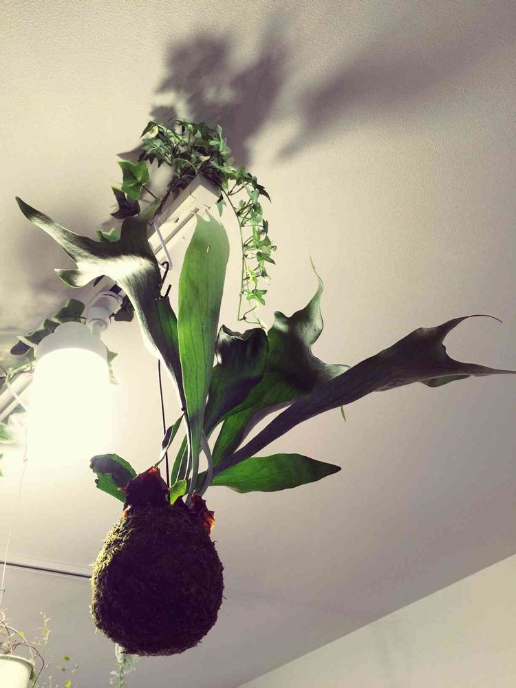 みっきぃ☆さんの壁/天井,コウモリラン・ビカクシダ「ビフルカツム」の苔玉,今日の一枚の投稿画像