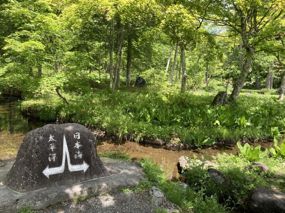 大日ヶ岳から流れてきた水は、ここを分水嶺として太平洋側と日本海側へと分かれて流れていきます。