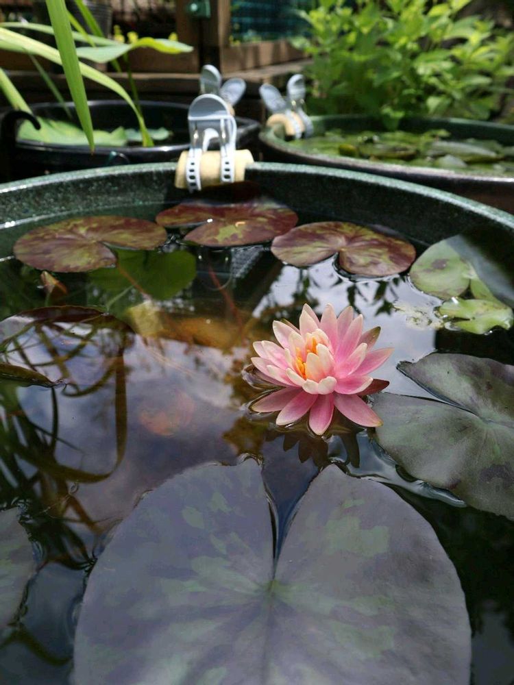 ビオトープでは温帯スイレン「コロラド」が開花しました♪開花初日なので全開じゃないけどとても美しいです!私の休日に合わせてくれてありがとうございます(笑) 沢山咲いてくれる品種みたいなので長く楽しめそうです!