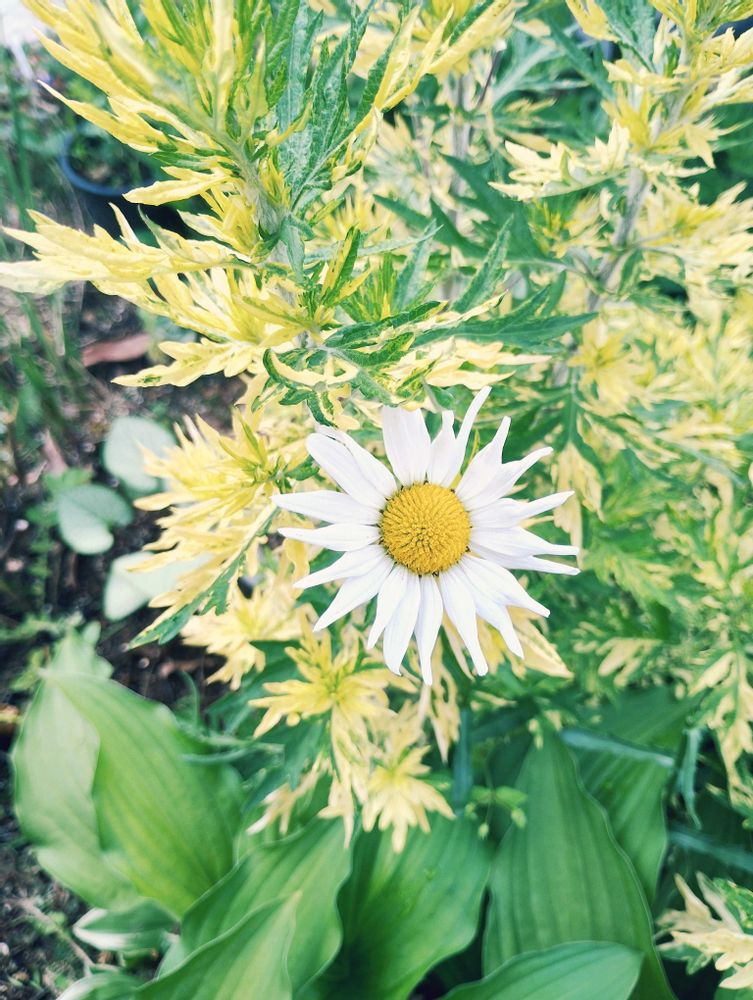 斑入りヨモギの花のように咲いています☆。.:*・゜