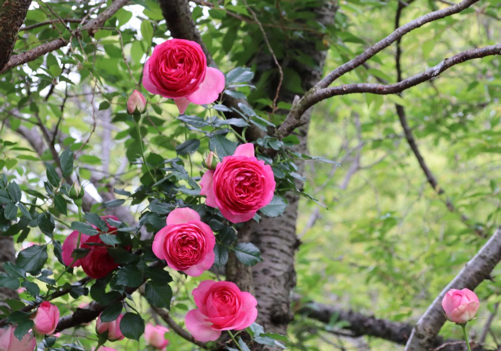 1と2枚目…桜の木に伸びるつるバラちゃんたち💗🩷💗🩷💚