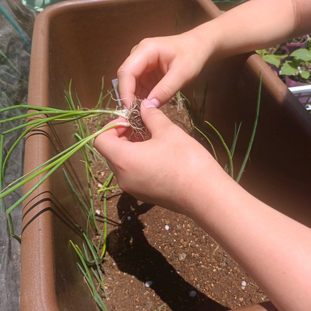 初心者🔰のため、ばらさないで、ポットから抜いたまま数本一緒に植え付けしてみたものと、