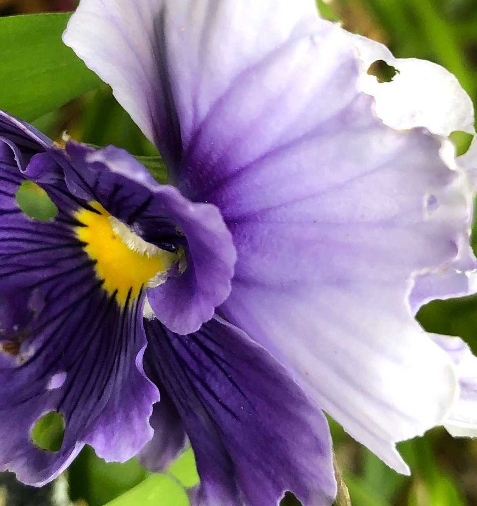お出かけ先で。パンジーちゃん虫食い