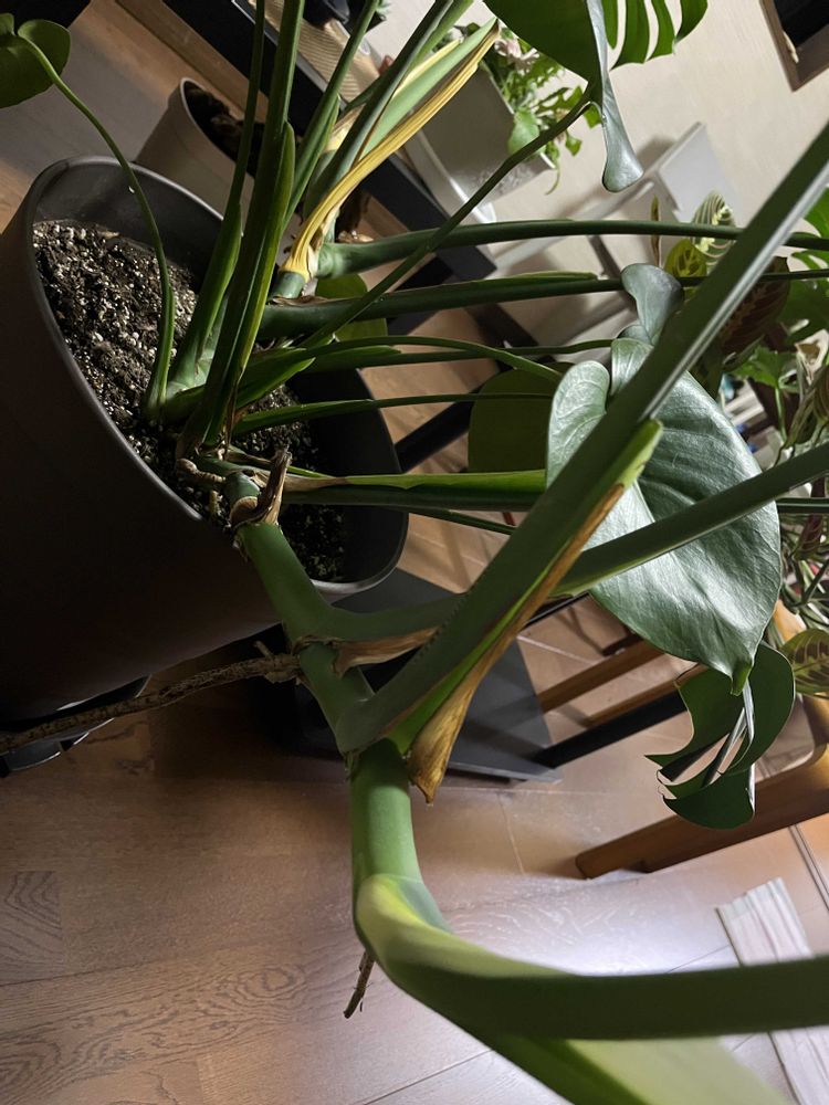 下請け業者さんから頼まれて干からびたモンステラを数枚もらい水差しからようやくここまで育ちました。