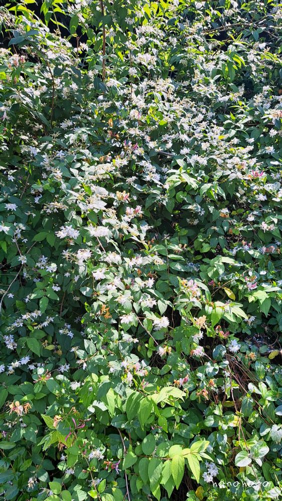 大きなウツギにスイカズラが絡みついていました。