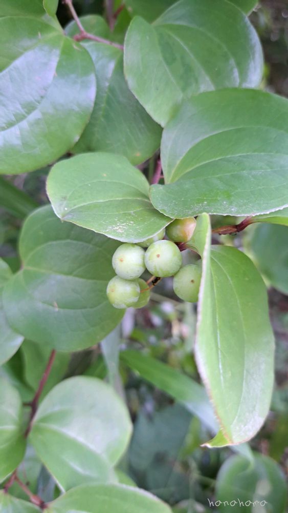 秋になると赤くなる実ですが、青い実は目立たないですね〜