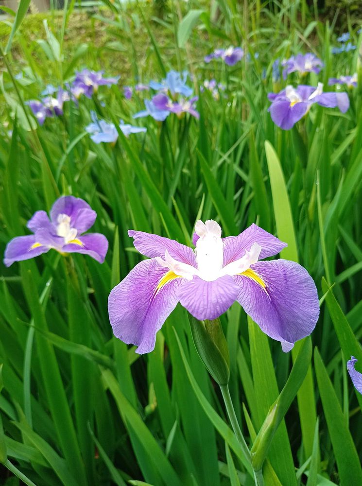 アヤメは乾燥した場所、カキツバタは水の中、菖蒲は水際や半湿地で見られます