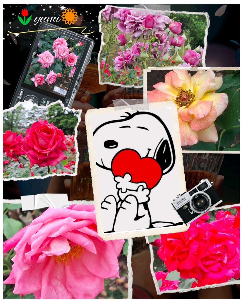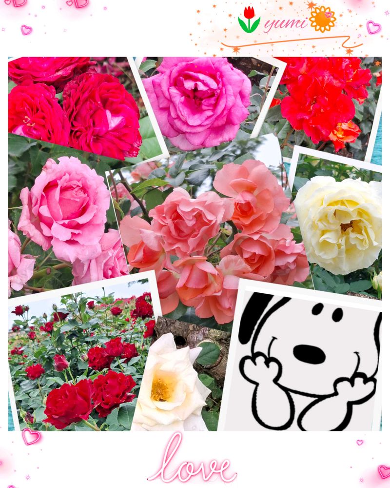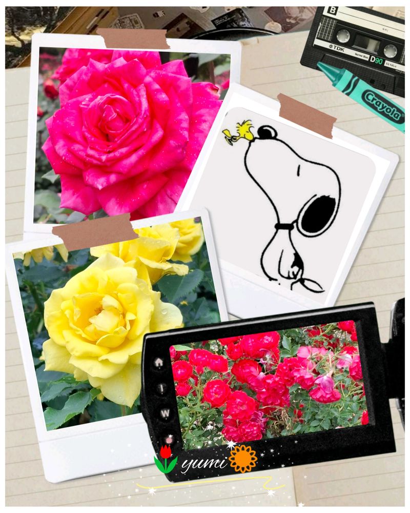 スヌーピーと薔薇のコラージュとっても素敵です😍