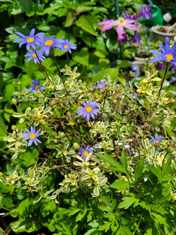 暴れ咲きの斑入りデージーと最後は苦手な寄せ植え( *´艸`)