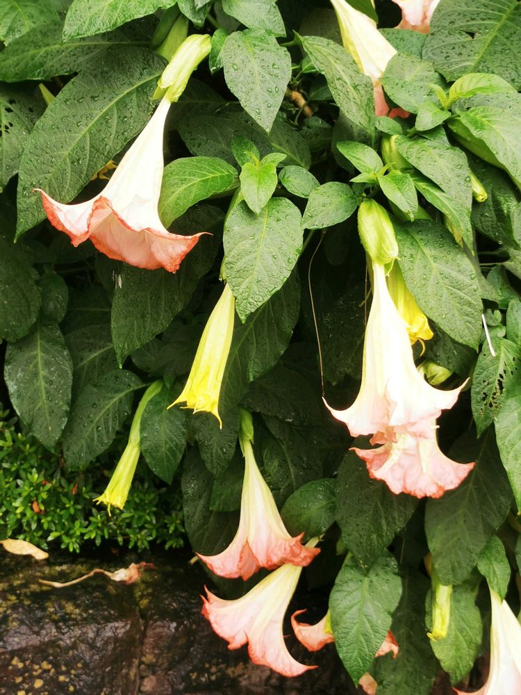 上野、交番脇のエンゼルトランペットが咲いていました。