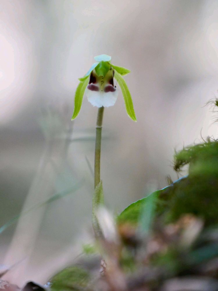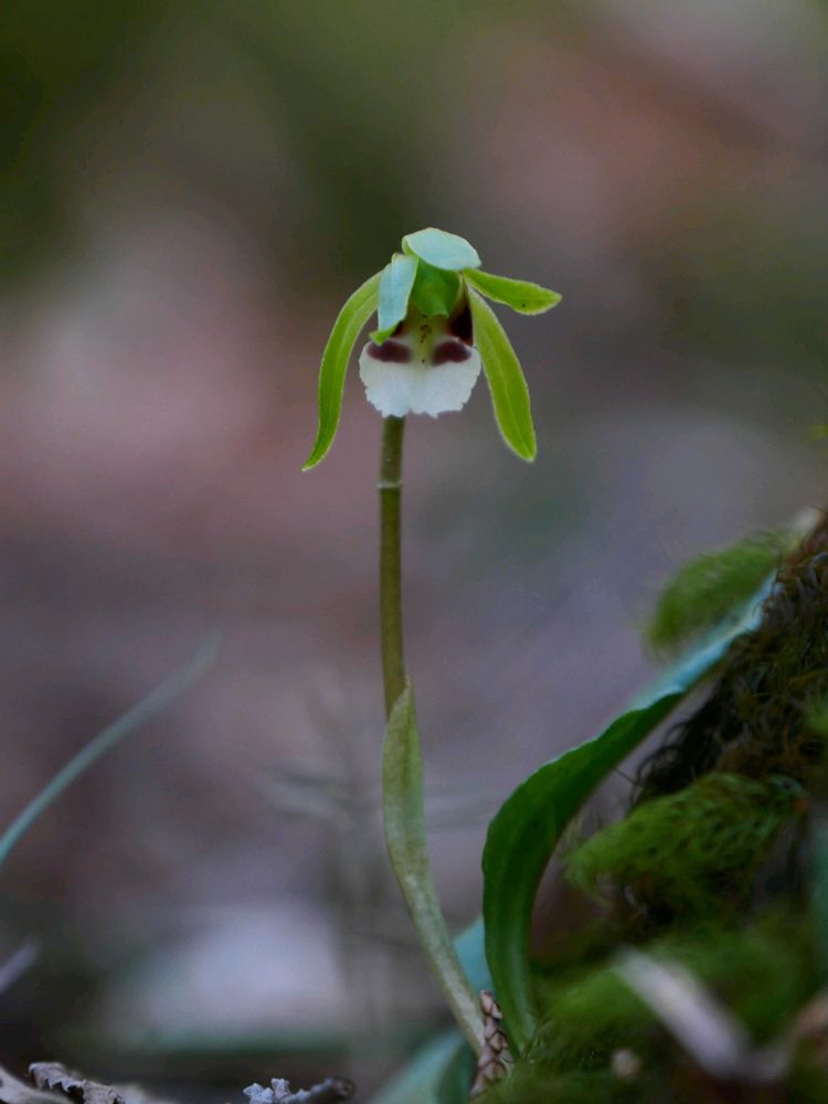 ホテイランと同じ葉っぱ一枚のランです。花も見慣れないと見つけにくいジミーちゃんです。