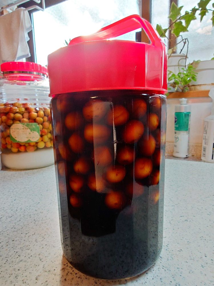 先日収穫した小梅は、梅干し、梅ジュース、醤油漬けにしました。