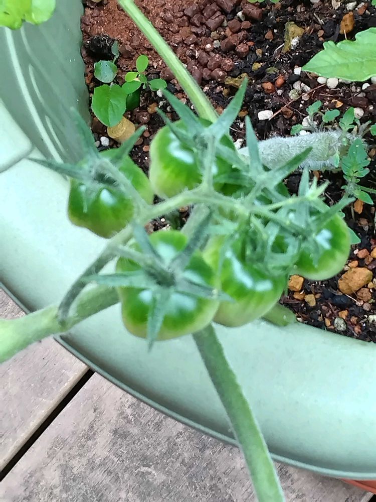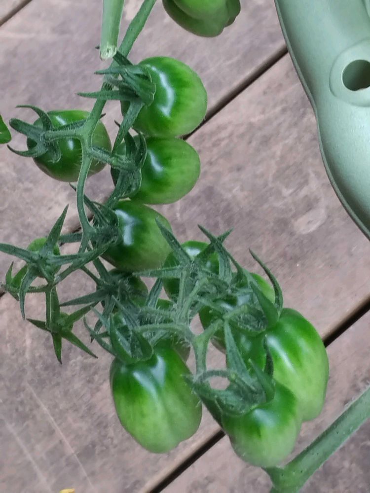 ミニトマト🍅まだまだ青い💚🍅ですが、幾つもぷっくら大きくなって来ました(„◕᎑◕„)ꕤ*゚ᴷª꒳ªⁱⁱ~💕