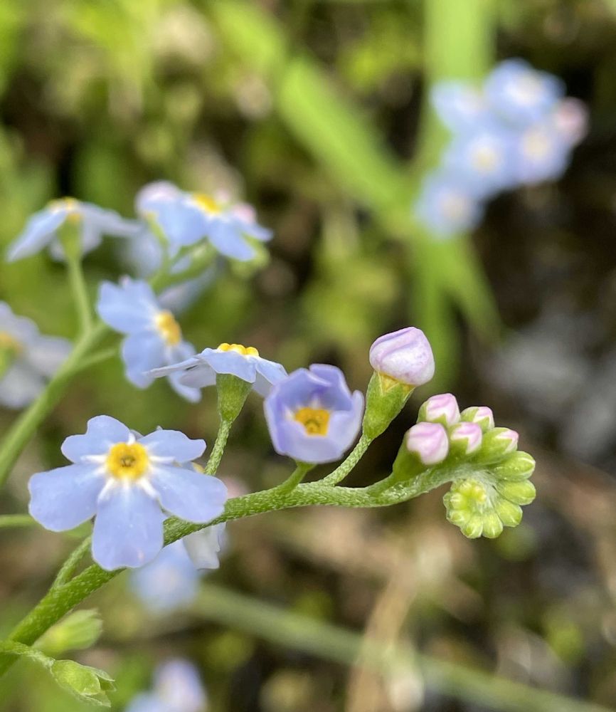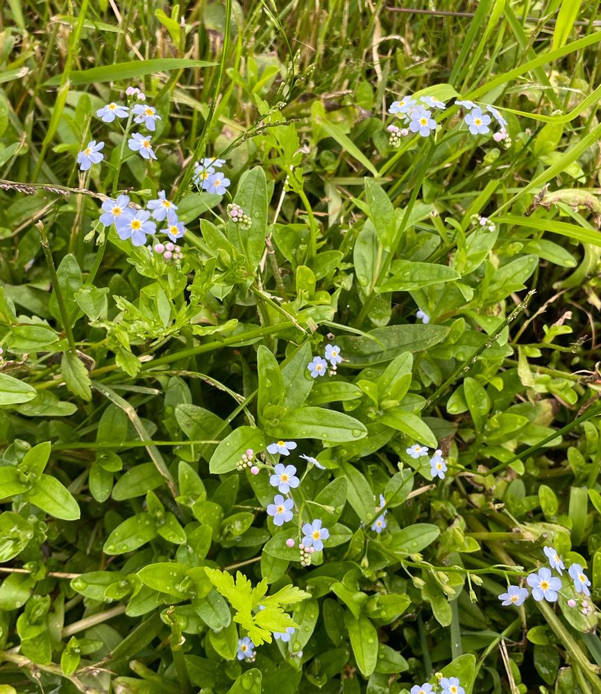 「花壇でよく見るワスレナグサは、ノハラワスレナグサやエゾムラサキ、またはその交配種であって、それと区別する意味で、このヨーロッパ原産の水辺に生える花をシンワスレナグサと呼ぶようです。」