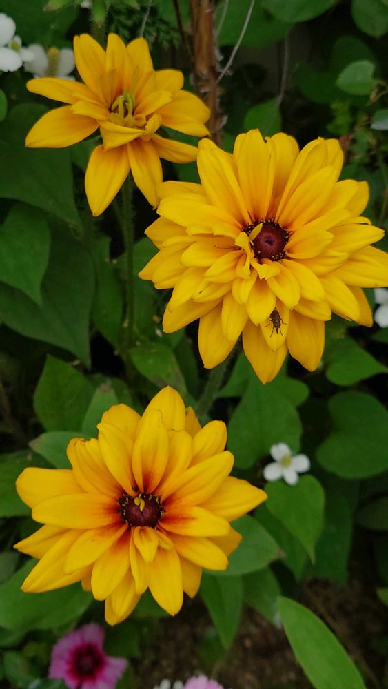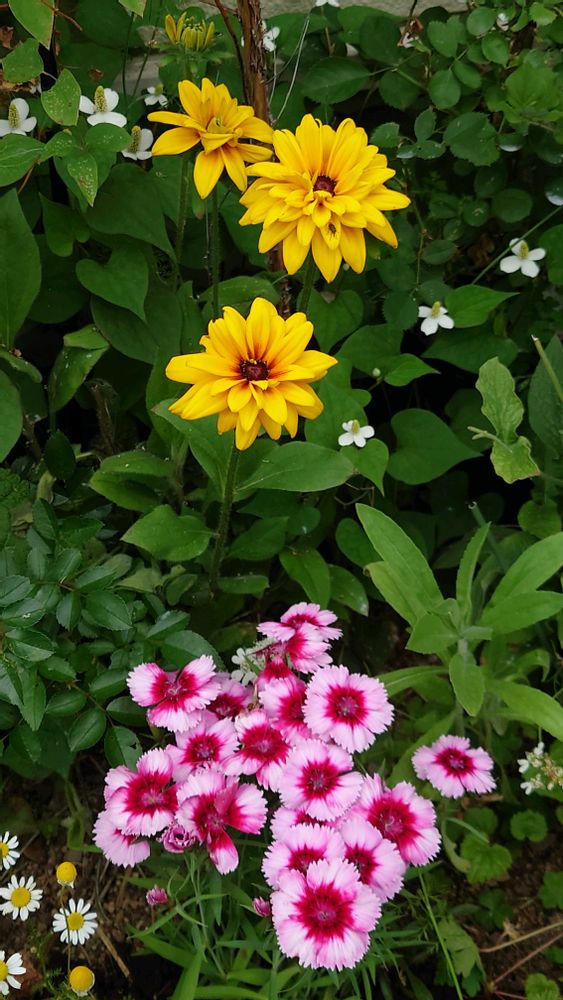 ルドベキア〜突然に咲いて来ました〜その手前に派手派手なダイアンサスを植えました〜😁✨