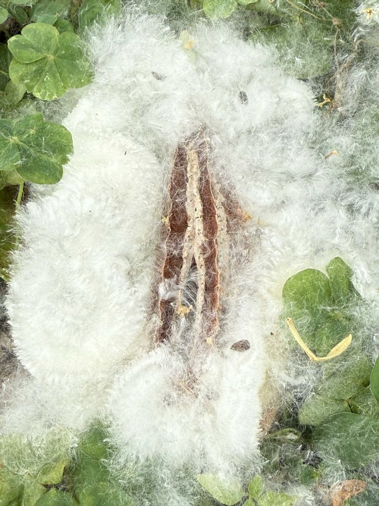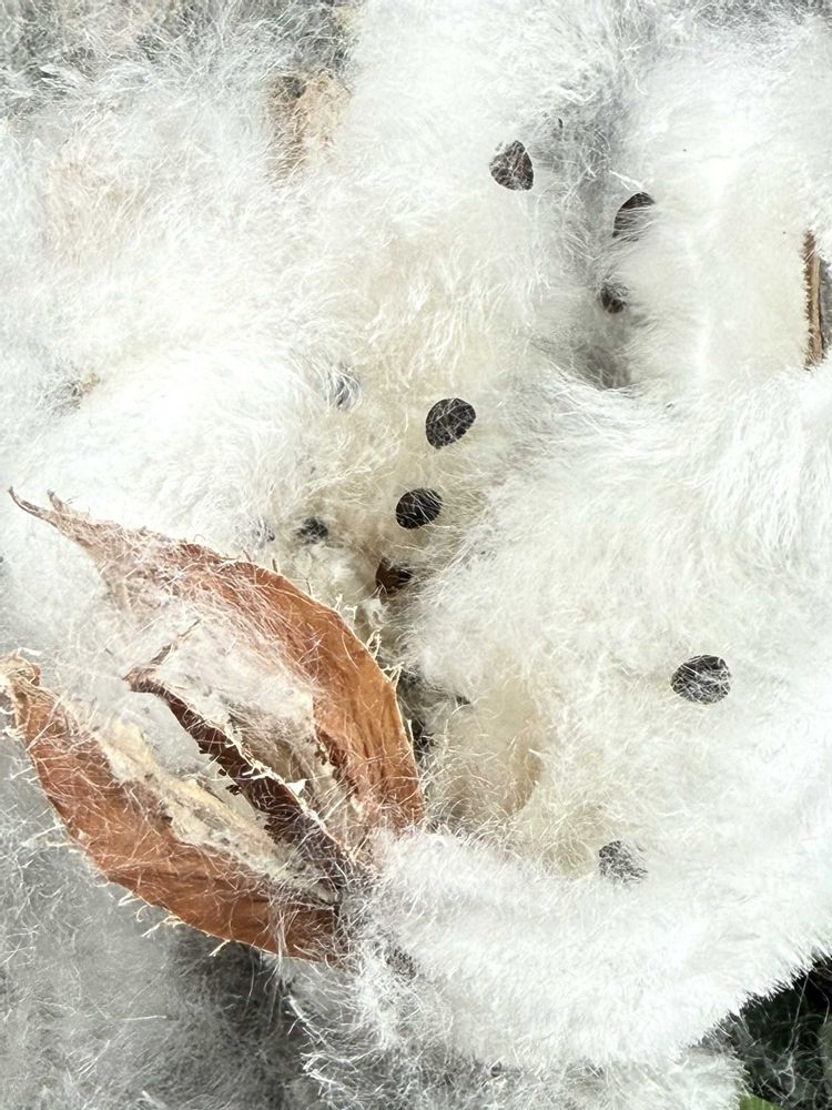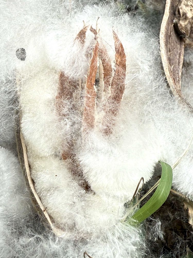 キワタ③:中心に茶色の芯があって(リンゴの芯みたい)どけたら黒い種が出て来ました〜☁️☁️☁️